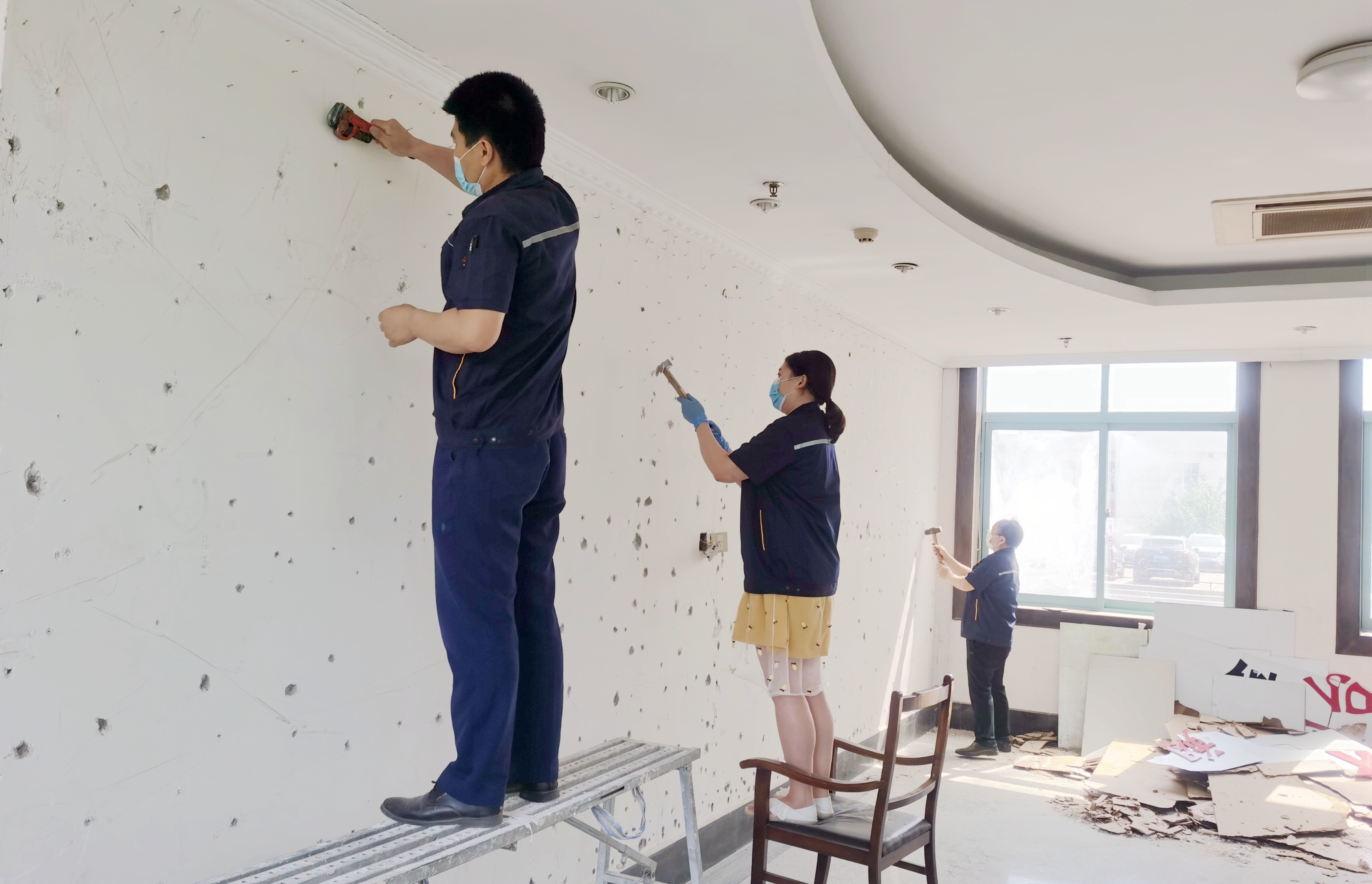 為加快“職工之家”項(xiàng)目建設(shè)進(jìn)度,招遠(yuǎn)市總工會(huì)領(lǐng)導(dǎo)多次深入現(xiàn)場(chǎng)指導(dǎo),金潮公司行政人事中心積極協(xié)調(diào)解決項(xiàng)目運(yùn)作中的問(wèn)題和困難,并與設(shè)計(jì)公司及施工單位協(xié)商,確定工期為20天。行政人事中心全體員工明確分工、落實(shí)責(zé)任,團(tuán)結(jié)協(xié)作、緊密配合,撰寫文稿、拍攝圖片,貨比三家網(wǎng)購(gòu)“職工之家”所需物品,清理墻壁上的鋼釘、搬運(yùn)圖書及物資;校對(duì)修訂文稿、篩選確定圖片。潤(rùn)禾建筑有限公司技術(shù)人員多次現(xiàn)場(chǎng)實(shí)地勘察、及時(shí)擬定施工平面圖;按照金潮公司提供的圖文資料,天地人禮儀文化傳媒有限公司設(shè)計(jì)師反復(fù)修改,最終確定設(shè)計(jì)方案。